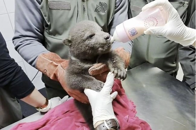 Yavru boz ayıya Ovakorusu Ayı Barınağı'ndaki ekipler, anne şefkatiyle yaklaşıyor ve besleme ile bakımına büyük özen gösteriyor.