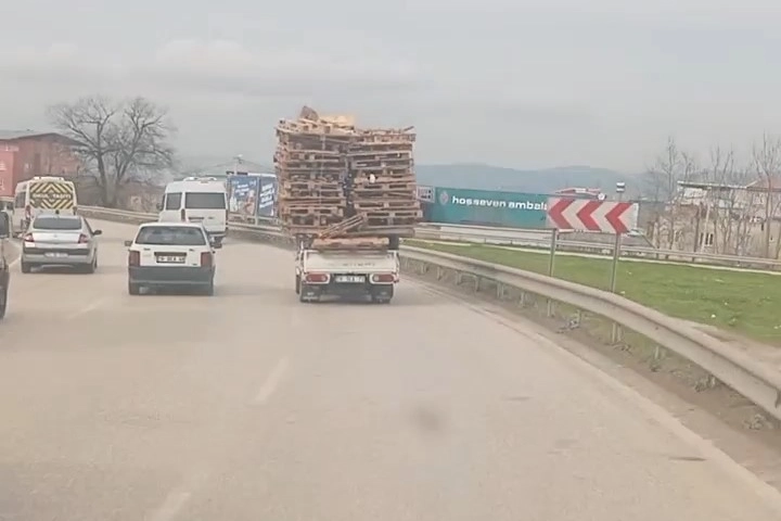 Olay, merkez Yıldırım ilçesi Şirinevler Mahallesi’nde meydana geldi. Edinilen bilgiye göre, kapasitesinin üstünde palet yüklü kamyonet, trafikte tehlike saçarak ilerledi. O anlar trafikteki diğer sürücülerin yüreklerini ağza getirirken, sürücü ara sokaklara girerek kendini kaybettirdi.