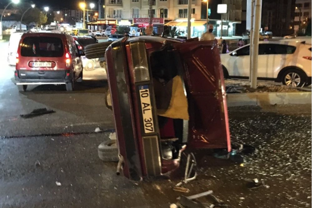 Edinilen bilgiye göre, kaza otogar kavşağında meydana geldi. Mehmet Ç. idaresindeki 10 AL 370 plakalı araç, Akçay istikametinden hızla gelerek kırmızı ışığa yakalanmadan Edremit merkez istikametine dönüş yapmak istediği esnada direksiyon hakimiyetini kaybetti. Araç kaldırıma çıkarak yan döndü. Kazada, araç içinde bulunan şoför ve beraberinde yolcu olarak bulunan O.Ç. ile H.C. 112 Acil Sağlık ekiplerinin ilk müdahalesinden sonra hastaneye kaldırıldı. Polisin önlem aldığı kaza ile ilgili araştırma sürüyor