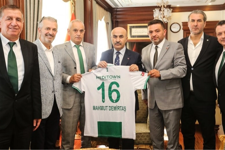 Bursaspor Kulübü Başkanı Recep Günay ve yönetim kurulu üyeleri, Bursa’nın yeni Valisi Mahmut Demirtaş’ı makamında ziyaret etti. Bursaspor’dan yapılan açıklama şu şekilde: “Başkanımız Recep Günay, Yönetim Kurulu üyelerimiz; Metin Genç, Sedat Topaloğlu, Turan Cesur, Ali Rıza San ve Savaş Sefaile birlikte Bursa Valisi Mahmut Demirtaş'ı makamında ziyaret etti. Ziyaretin sonunda Başkanımız Recep Günay, Demirtaş'a isminin yazılı olduğu formamızı hediye etti.”