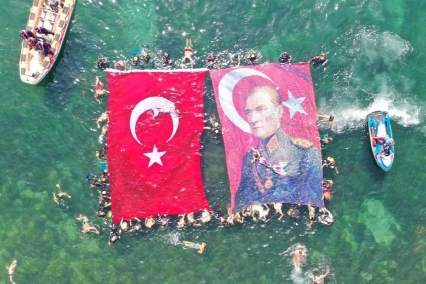 Kerpe sahilinde denize açılan bir grup dalgıç 30 Ağustos Zafer Bayramı’nı kutlamak amacıyla denizde Türk bayrağı ve Atatürk posteri açarak bayram coşkusunu Karadeniz sularına taşıdı. Mutluluk ve heyecanla gerçekleşen organizasyona sahil güvenlik, kıyı emniyeti ve çok sayıda sivil tekne eşlik etti. Dalış kulübü üyeleri, etkinliği izleyen vatandaşlar ve karşı kıyıdaki plajda bulunan insanlar dalgıçların deniz yüzeyine açtıkları dev Türk bayrağı ve Atatürk resmi ile saygı duruşunda bulundu. Büyük coşku ve heyecanla gerçekleşen etkinlikte dalgıçlar dakikalarca alkışlanırken, çevredeki vatandaşlar denizde açılan Türk bayrağını ve Atatürk portresini taşımaya eşlik etti.