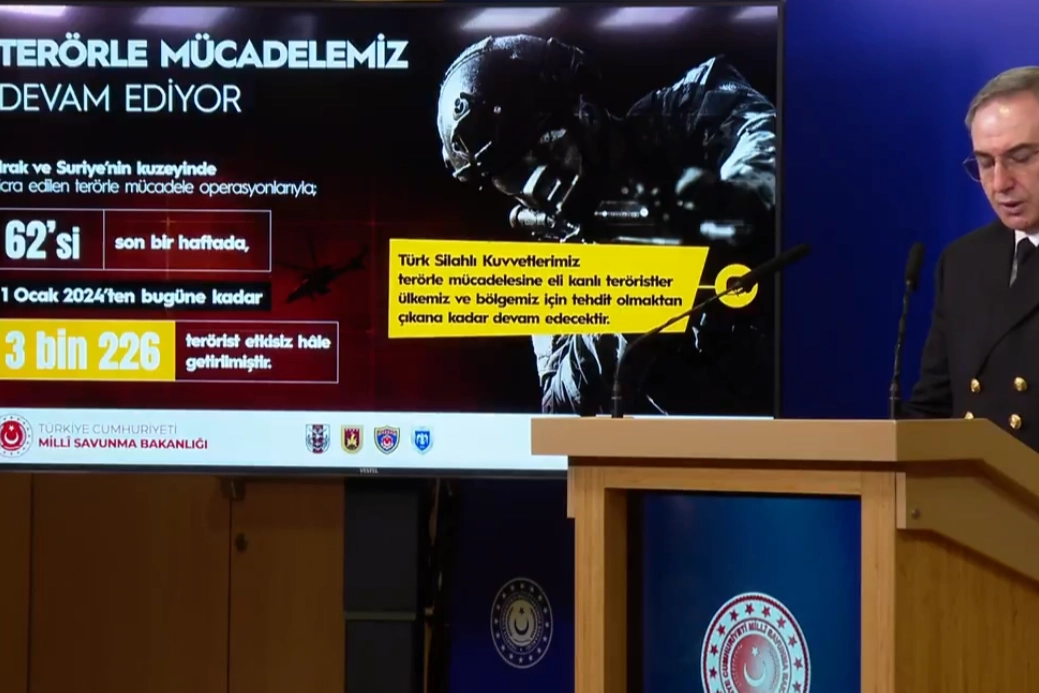 ANKARA (İGFA) - Milli Savunma Bakanlığının faaliyetleri başta olmak üzere gündemdeki konulara ilişkin olarak Haftalık Basın Bilgilendirme Toplantısı gerçekleştirildi. Türk Silahlı Kuvvetlerinin, terörü kaynağında yok etme stratejisi çerçevesinde sürekli ve kapsamlı olarak operasyonlar gerçekleştirdiği belirtildi. 62’si son bir haftada olmak üzere 1 Ocak 2024’ten bugüne kadar 3 bin 226 terörist etkisiz hâle getirildi.