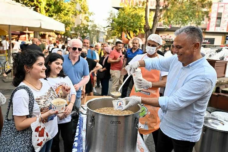 ANTALYA (İGFA)- Muratpaşa Belediyesi’ndebolluğun, bereketin, paylaşmanın, birliğin ve beraberliğin simgesi aşure için hazırlıklar günün erken saatlerinde belediyeaşevinde başladı. Buğday, pirinç, kuru fasulye ve daha çok malzeme pişirildi, aşureye eklendi ve ikram için kazanlarda taşıt trafiğine kapalı olan Kazım Özalp Caddesi’ne getirilirdi. Başkan Uysal, eşi Ümran Uysal’la aşure kazanını kapağını açtı ve kent sakinlerine tek tek ikram etti. Uysal,aşurenin her kültürde ‘umut’ demek olduğunu belirterek,“Aşure, sevgi, saygı, paylaşmak ve mutlaka beraber olmak demek.Varlıkta ve yoklukta geleceğe doğru umutla bakmak demek.Aşuremiz, birliğimiz, beraberliğimiz ve dayanışmamız hiç eksik olmasın.Bu güzel ortak yaşam ve değerler Muratpaşa’mızdan Türkiye’mize yayılsın” diye konuştu.