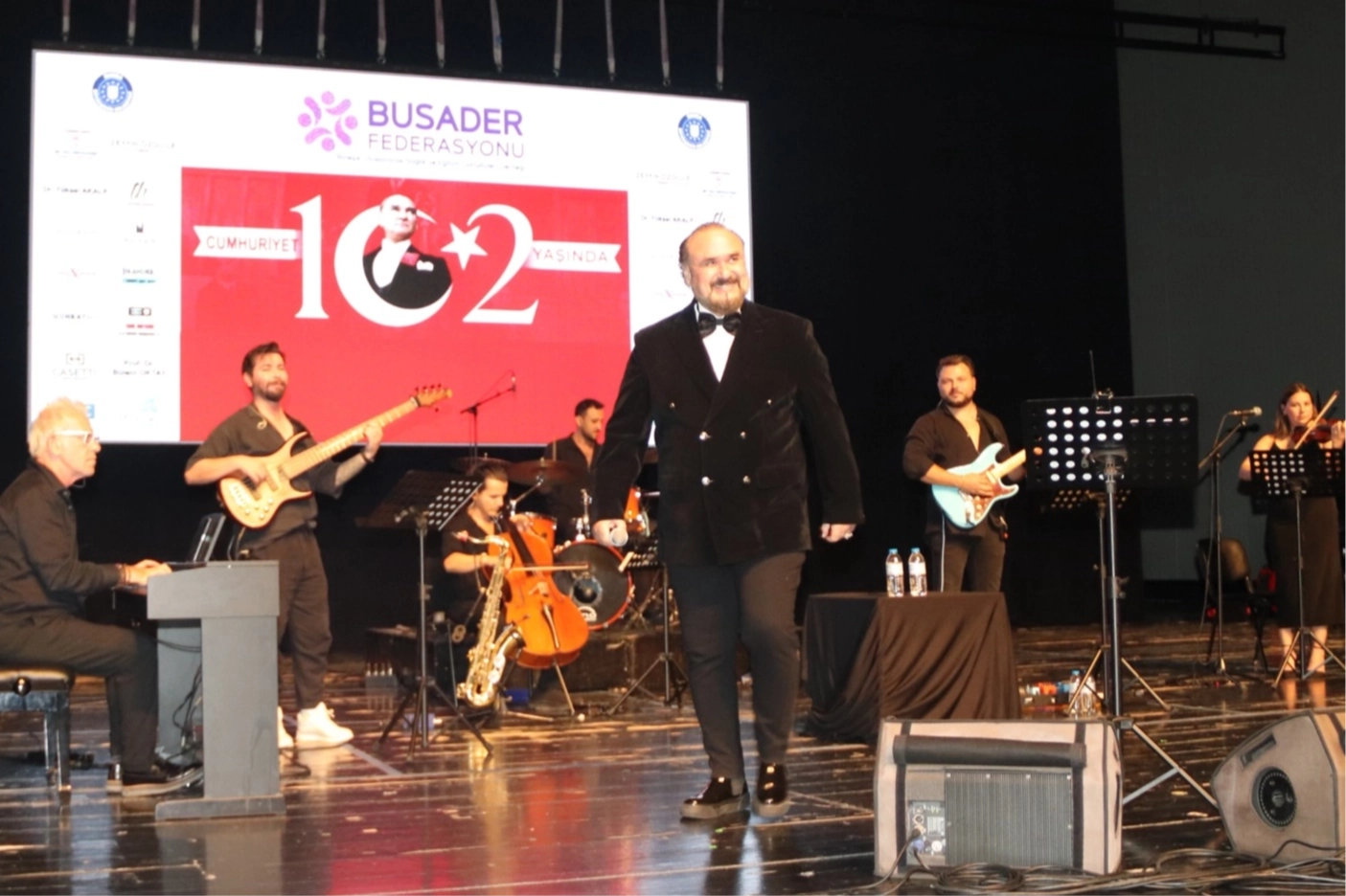 Bursa, İstanbul ve Ankara'daki 6 derneği bir araya getiren Birleşik Uluslararası Sağlık ve Eğitim Gönüllüleri Dernekleri Federasyonu (BUSADER), Cumhuriyet'in 102. yıl dönümünü dünyaca ünlü tenor Hakan Aysev'in harika konseriyle kutladı.