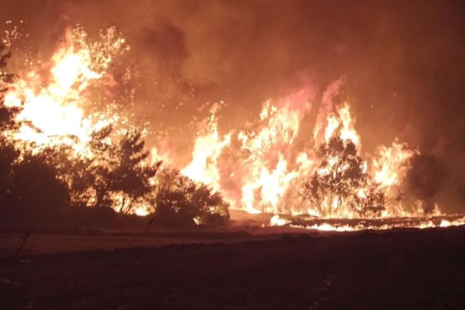 Çanakkale’de saat 12.30’da başlayan orman yangını 12. saatine girerken ekipleri havadan ve karadan müdahalelerine devam ediyor. Yangında meydana gelen alevler adeta geceyi aydınlatıyor. Ekipler cansiperane bir şekilde çalışmalarına devam ediyor.