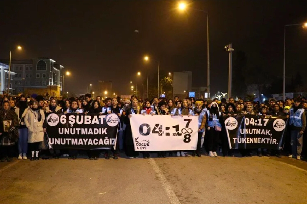 Yürüyüşün ardından ise depremin yaşandığı saat 04.17'de kentteki tüm camilerden sela okundu.