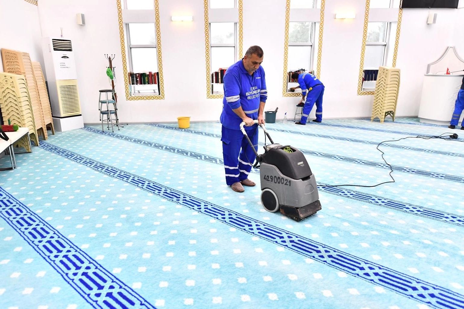 İzmir Büyükşehir Belediyesi, Ramazan ayı öncesi camilerde temizlik çalışmalarına hız verdi.