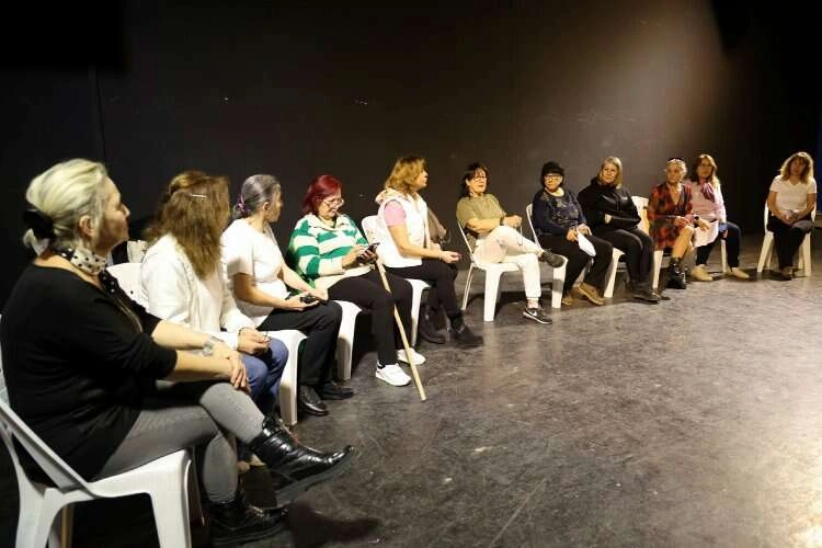 Bir diğer tiyatro kursiyeri Reyhan Onat ise konuşmasında, “Burası benim ilk sahnem. Ama okumayı yazmayı çok sevdiğimden burada olmak istedim. Bazen zor oluyor ama burada beynimizi çalıştırıyoruz. Burası bize en azından terapi oluyor ve evden çıkmamıza vesile oluyor” sözleriyle heyecanını paylaştı.