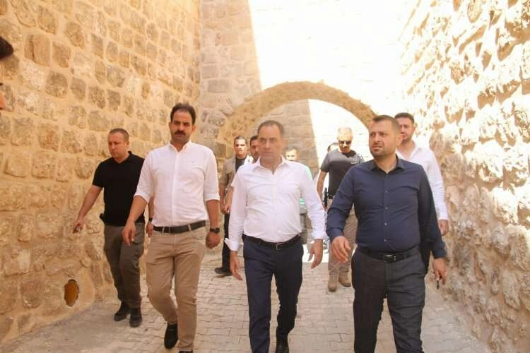 Şehmus EDİS (MARDİN İGFA) AK Parti Mardin İl Başkanı Vahap Alma ve Midyat Belediye Başkanı Yardımcısı Ali Alptekin ile birlikte gün yüzüne çıkarılan yeraltı şehrinde yaptığı incelemenin ardından, ibadethane, silo, su kuyuları bulunan ve dehlizlerle geçişlerin olduğu yer altı şehri ile ilgili yetkililerden bilgi aldı.
