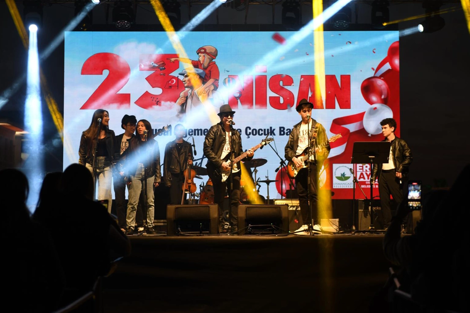 Osmangazi Belediyesi tarafından müziğe ilgi duyan gençlerin yeteneklerini erken yaşta keşfetmelerinin yanında, seslerini de duyurmalarına da imkan sağlayan Liseli Orkestralar Yarışıyor’a katılarak finale kalan liseli gençlerden oluşan orkestralar, birbirinden güzel şarkıları çocuklar için söyledi. Sahne performanslarıyla da beğeni toplayan genç müzisyenler, çocuklara unutamayacakları bir bayram hediyesi sundu.