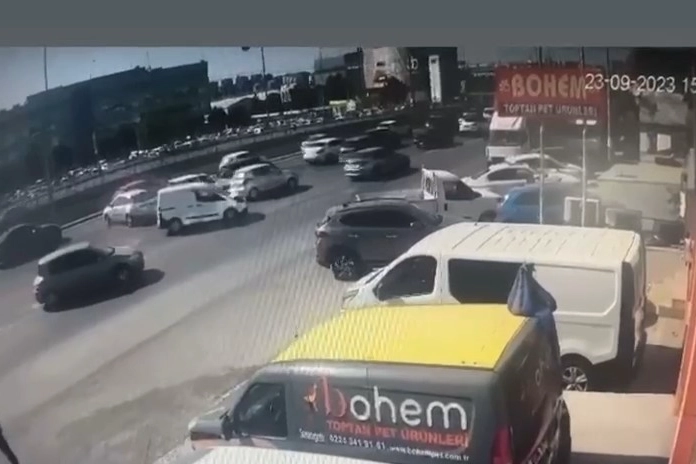 Kaza, merkez Osmangazi ilçesi Emek Zekai Gümüşdiş Mahallesi Sanayi Caddesi üzerinde meydana geldi. Hafif ticari aracın sürücüsü, cadde üzerinde hızla seyir halindeyken önünde yavaşlayan trafiği geç fark etti. Frene basan sürücü kayan aracın kontrolünü kaybedince araç, otomobile çarptı. Savrulan otomobil de önündeki 2 araca vurarak durabildi. Kaza anı güvenlik kamerasına yansırken, kazada yaralanan olmadı.