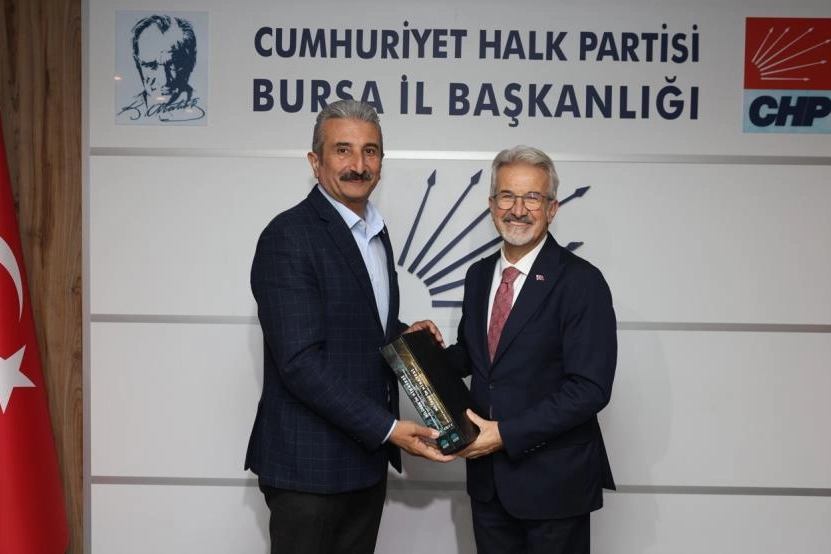 Başkan Erdem ziyarette CHP Bursa İl Başkanı Nihat Yeşiltaş’a Nilüfer’in Hikayesi kitaplarını armağan etti.