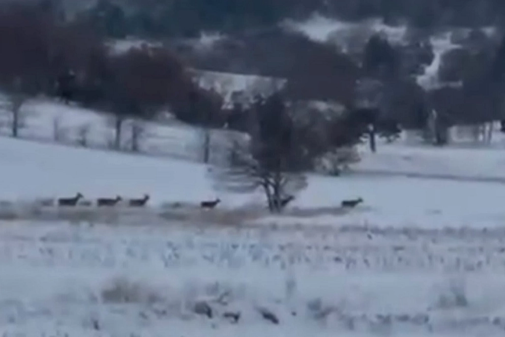 Kameraya yansıyan görüntülerde sürü halinde hareket eden geyikler kısa bir süre sonra ormanın derinliklerinde gözden kayboldu.