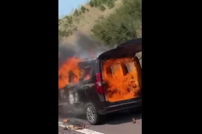 Olay Bursa-Gebze otobanı Orhangazi ilçesi yakınlarında meydana geldi. İstanbul yönüne seyir halindeki bir hafif ticari araç bilinmeyen bir nedenle bir anda alev aldı. Yangını fark eden sürücü aracını hemen yol kenarına çekip itfaiye ekiplerine haber verdi. İhbar sonrası olay yerine polis ve itfaiye ekipleri sevk edildi. Ekiplerin çabalarına rağmen araç kullanılamaz hale geldi. Aracın alev alev yandığı anlar trafikte seyir halinde olan diğer sürücülerin cep telefonu kameralarına yansırken, polis ekipleri olay ile ilgili tahkikat başlattı.