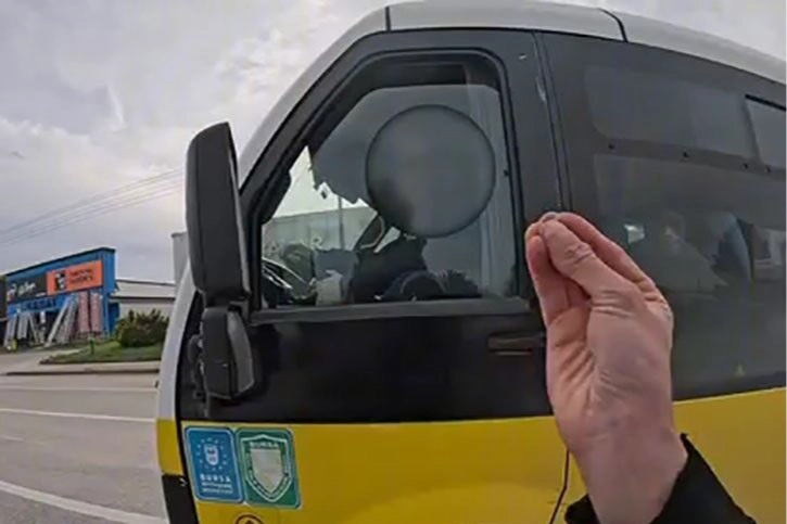 Taraflar arasında kısa süreli tartışma yaşanırken, o anlar motosiklet sürücüsünün kask kamerası tarafından kaydedildi.