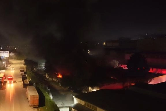 Bursa'da bir tekstil fabrikasının deposunda gece saatlerinde yangın çıktı. Sanayi bölgesi yoğun duman altında kaldı.