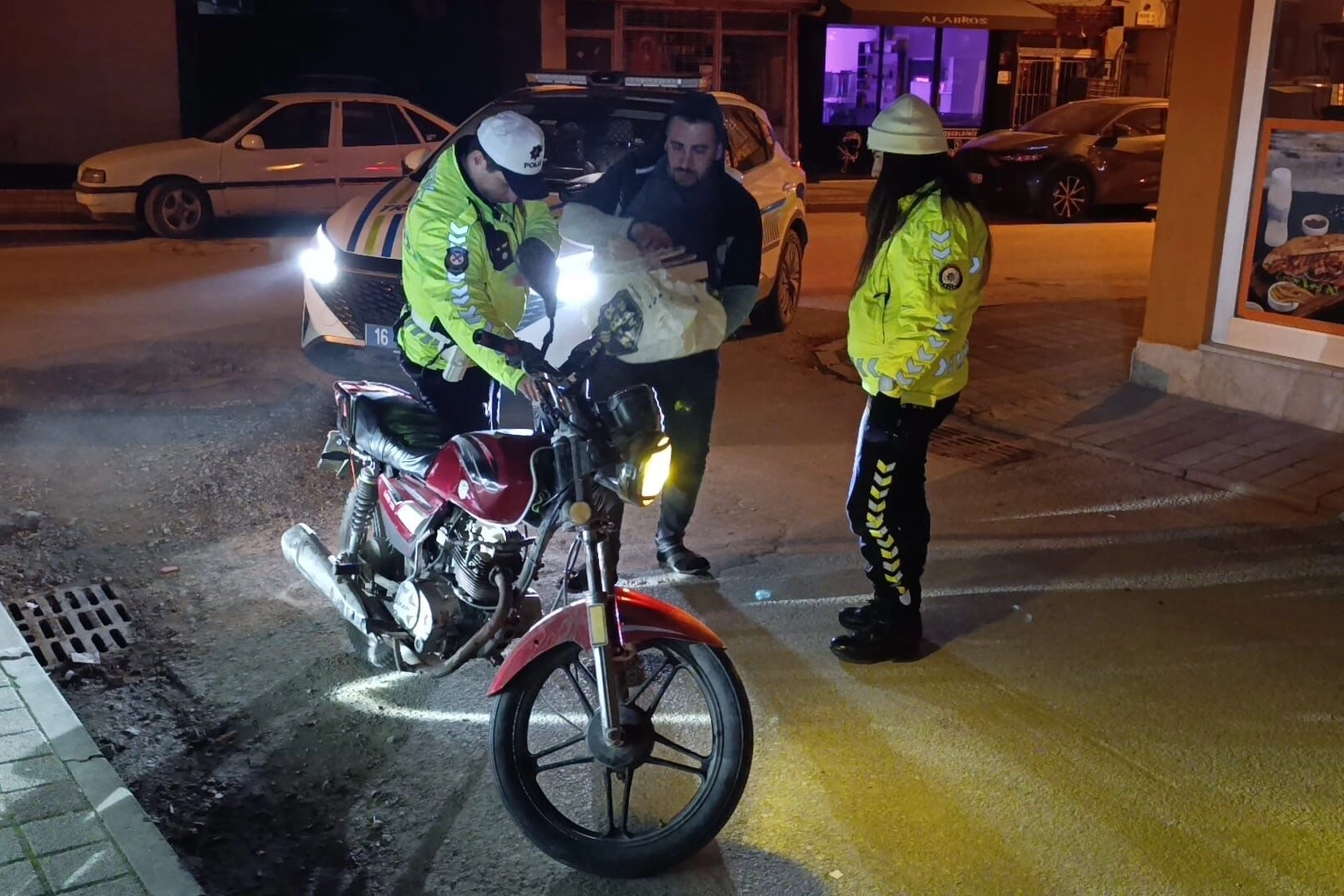 Trafik ekipleri tarafından yapılan kontrollerde motosikletin sahibi olan Muhammed H. Olduğu tespit edildi. Motosiklet sahibi olay yerine gelerek, motosikleti oğlu Abdulgani H.'nin (25) kullandığını söyledi.