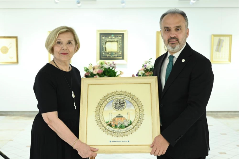 Bursa Büyükşehir Belediye Başkanı Alinur Aktaş da sergi ziyaret ederek Tezhip sanatçısı Memnune Birkan’ı tebrik etti. Çalışmaları hakkında bilgi alan Başkan Alinur Aktaş, Bursa’nın köklü tarihiyle büyüleyici bir şehir olduğunu söyledi. Şehir kimliğini oluşturan kültürel değerlerinin sanat dünyasına ilmek ilmek işlendiği bir yer olduğunu da belirten Başkan Aktaş, Bursa’nın kültürel ve sosyal hayatıyla öne çıkmayı başarabilen, farklı etkinliklerle sosyokültürel hayatını sürekli zenginleştiren bir şehir olduğunu ifade etti. Sanatkârlar şehri olan Bursa’nın kültürüne ve tarihine sahip çıktıklarını dile getiren Başkan Aktaş, “Bursa Büyükşehir Belediyesi olarak her projede kültürel ve sanatla ilgili değerlerimizi, sadece Türk milletine değil, tüm dünyaya bırakılacak mirasımız olarak görüyor ve gözetiyoruz. Geleneksel sanat dallarımızı genç nesillere aktarma noktasında önemli programlara imza atıyoruz. Böylece dünün emaneti sanat dallarımızın yarınlara teslim edilmesini de garanti altına almış oluyoruz. Büyükşehir Belediyesi’nin katkılarıyla düzenlenen ‘Saraydan Sanata Tezhip’ sergisi de saray eserlerini tezhiple buluşturarak gün yüzüne çıkarmaktadır. Memnune Birkan başta olmak üzere emeği geçen herkese teşekkür ediyorum” dedi.