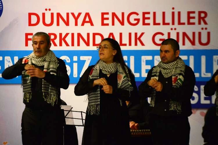 Barış Manço Kültür Merkezi’nde gerçekleştirilen programda, katılımcılara unutulmaz anlar yaşatan ‘özel’ bireyler Filistin'deki İsrail katliamını işaret diliyle aktarıp bir farkındalığa imza attı.