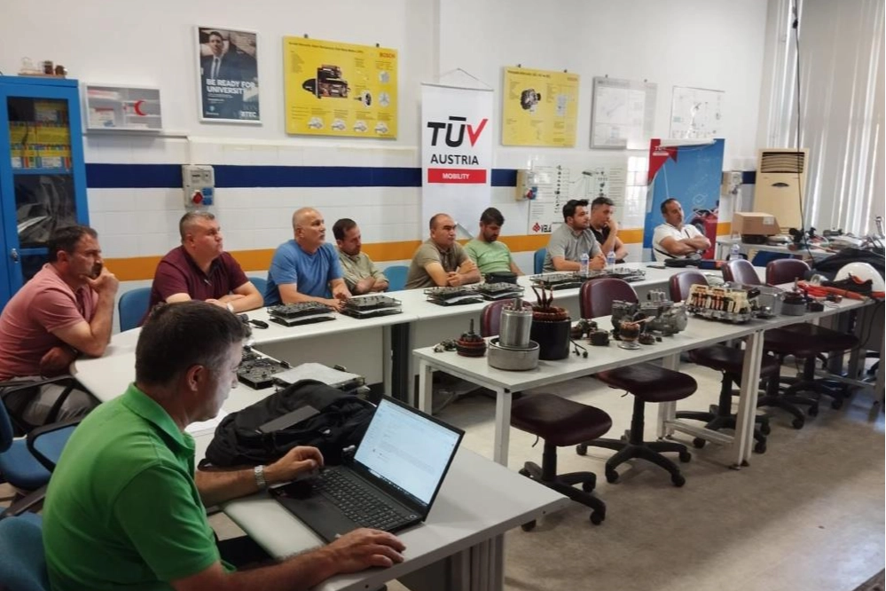 BTSO tarafından hayata geçirilen Yeni Nesil Araç Teknolojileri (Elektrikli, Hibrit, Otonom) Alanında Sektörel Mesleki Eğitim ve Öğretim Yeterlilik ve Geliştirme Merkezi Projesi BTSO Eğitim Vakfı bünyesinde faaliyetlerini sürdürüyor. BUTGEM’de yer alan merkez, Bursa’da yeni nesil araç teknolojileri alanında ihtiyaç duyulan nitelikli insan kaynağına katkı sağlayacak. Mesleki eğitime önemli katkı Projede eğitim çalışmaları BUTGEM’de yoğun katılımla sürüyor. Motorlu araçlar alanında eğitim veren meslek lisesi öğretmenlerine şu ana kadar Otomotiv Elektroniği Kursu, Yakıt Pili, Batarya ve Şarj Sistemleri Kursu, Araç Haberleşme Teknolojileri Kursu, Hibrid Motorlu Taşıtlar Teknolojisi, Elektrik Motorlu Taşıtlar Teknolojisi Kursu, Taşıt Diagnostik ve Arıza Giderme Kursu, Otonom ve İleri Sürüş Destek Sistemleri Kursu, Otomotiv Elektroniğinde Bakım Arıza Arama Kursu, Elektrikli Araca Dönüşüm ve Tadilat Teknolojileri Kursu, Hibrid ve Elektrikli Araçlarda Güç Aktarma ve Hareket Kontrol Sistemleri Kursu ve Otomotiv Elektroniğinde Gömülü Sistemler başlıklarında hizmet içi eğitimler verildi. Çalışma ve Sosyal Güvenlik Bakanlığı koordinasyonunda operasyon faydalanıcısı Milli Eğitim Bakanlığı ile birlikte düzenlenen eğitimler Eylül ayının sonuna kadar devam edecek. Türkiye’de ilk uygulama Merkez, 4 farklı eğitim laboratuvarı ve atölyeden oluşuyor. Proje ile otomotiv endüstrisinin lokomotifi olan Bursa’da yeni nesil araç teknolojileri alanında mesleki eğitim altyapısının güçlendirilmesi, otomotiv ana ve yan sanayiye nitelikli personel yetiştirilmesini hedefleniyor. Avrupa Birliği ve Türkiye Cumhuriyeti tarafından finanse edilen merkez, Türkiye’de bu alanda ilk uygulama olma özelliği de taşıyor.