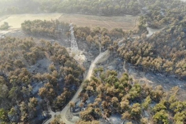 Bakan Yumaklı, büyük orman yangınının 48 saat dolmadan kontrol altına alındığını belirterek "Yangında 4 bin 80 hektarlık alan etkilendi" dedi. Yanan alanlar da dron kamerasıyla görüntülendi. Yerleşim alanlarını küle çeviren yangında büyük hasar alan Yağcılar Köyü’nde ise mezarlıklar alevlere teslim oldu.