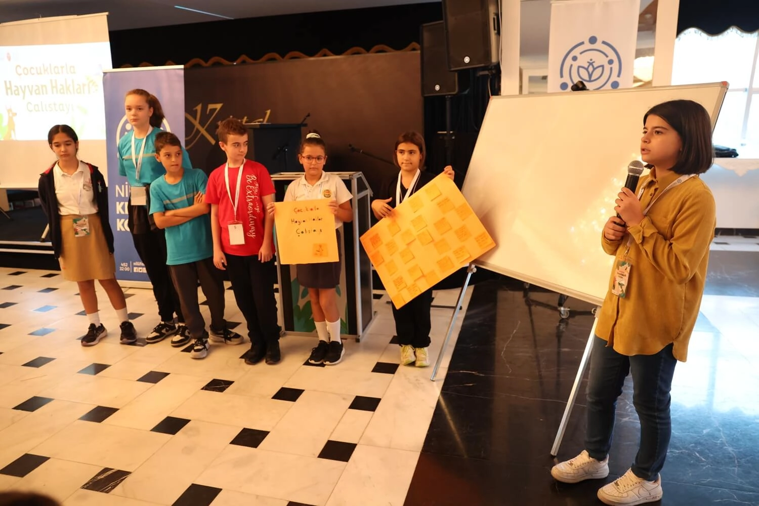 Çalıştayın ikinci bölümünde ise grup çalışmalarına geçilerek, kentte yaşayan hayvanların sorunları, nedenleri ve çözüm önerileri masaya yatırıldı. Grup çalışmaları sonucu çocuklar, “işkenceye son verilmesi, ticaret yasağı, zararlı besin verilmesi, sahiplendirme, yaşama alanları oluşturulması, sevgi ve şefkat gösterilmesi” gibi ana başlıklardan oluşan fikirlerini paylaştı.