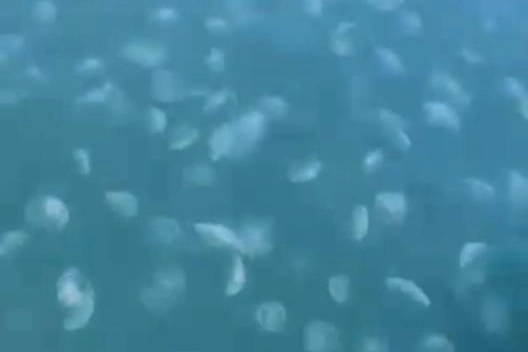 Gemlik'in Küçükkumla Mahallesi'ndeki sahil boyunda denizanası istilası yaşanıyor. Binlerce denizanası sahili şeridini doldururken, o anlar tekneyle suda ilerleyen balıkçıkların kamerasına yansıdı.