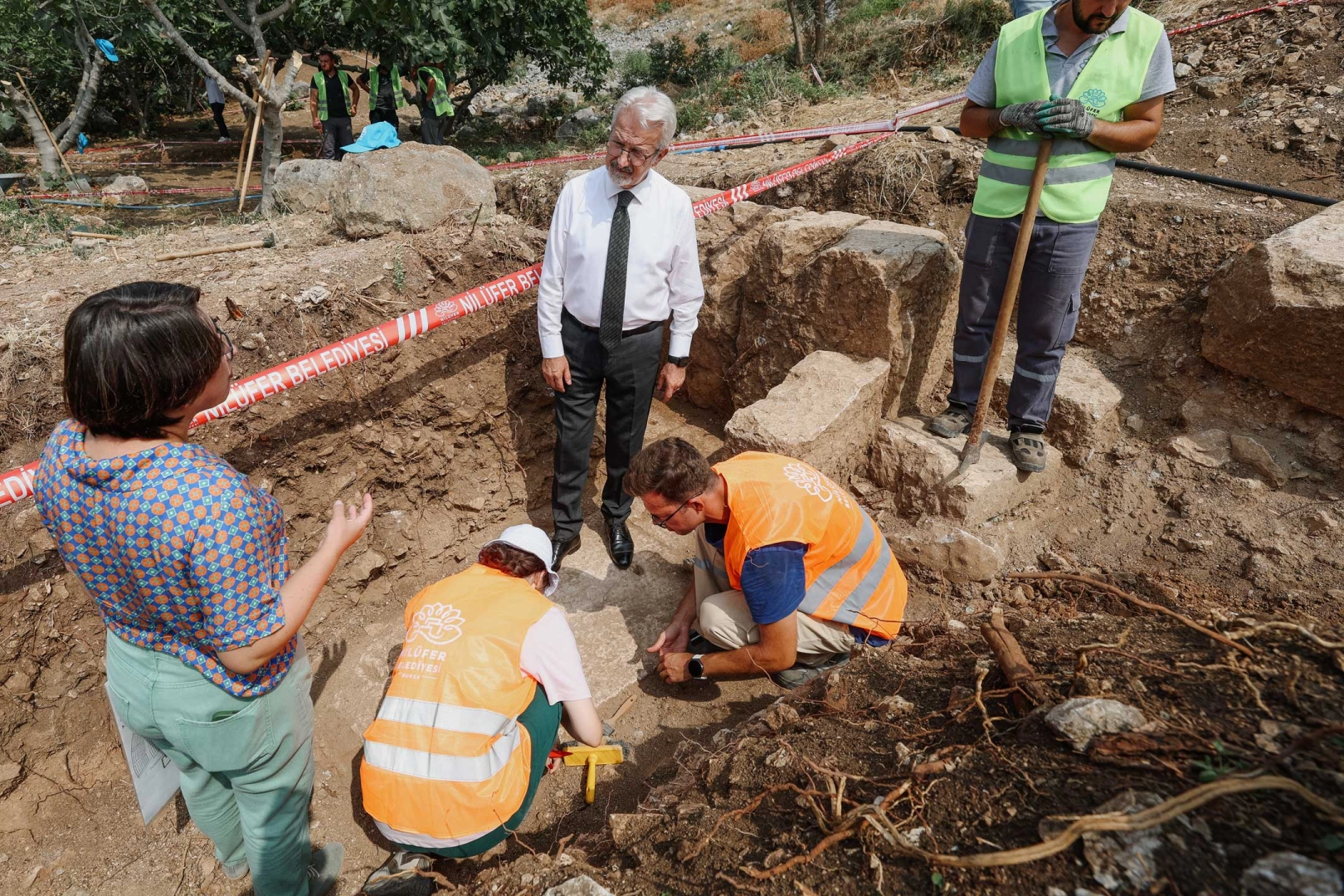 Nilüfer Belediyesi, doğal güzelliğiyle dünyaca ünlü bir turizm merkezi haline gelen Gölyazı’da, antik kent dokusunu da gün yüzüne çıkarmak için kazı çalışmalarını sürdürüyor. Nekropol Alanı, Kutsal Alan ve Kızada’da yürüten çalışmaların bir ayağı olan Zambaktepe bölgesindeki Milattan önce 2. ve 3. yüzyıllarda inşa edildiği tahmin edilen antik tiyatro alanı ve yerleşim bölgesinde yer alan sıbyan mektebindeki kazı çalışmalarında yeni keşifler elde edildi. Kültür ve Turizm Bakanlığı izniyle Bursa Müzeler Müdürlüğü başkanlığında, Bursa Uludağ Üniversitesi Fen Edebiyat Fakültesi Arkeoloji Bölümü Öğretim Üyesi Prof. Dr. Derya Şahin’in bilimsel danışmanlığında geçen yıl başlayan kazı çalışmaları sonucu antik tiyatronun oturma sıralarının bir bölümü, doğu parados girişi, kuzey ve güney duvarları ile analemla duvarının bir kısmı gün yüzüne çıkarıldı. Temmuz ayında başlayan ve titizlikle süren çalışmalarda sıra, antik tiyatronun sahne alanına geldi. Nilüfer Belediye Başkanı Turgay Erdem de, kazı alanlarına giderek hem incelemelerde bulundu hem de çalışmaların geldiği son durum hakkında detaylı bilgi aldı. Antik tiyatroyu ortaya çıkararak o dönemi yansıtacak şekilde hizmete açmayı planladıklarını belirten Nilüfer Belediye Başkanı Turgay Erdem, “Bu hedefle çalışmalarımızı titizlikle sürdürüyoruz. Gölyazı’nın antik dokusunu açığa çıkartma konusundaki çalışmalarımız, antik tiyatro ile devam ediyor. Sahne alanındaki çalışmalar sonunda artık tiyatronun planının ortaya çıkabileceğini düşünüyoruz. Öncelikli hedefimiz antik döneme ait keşifleri ortaya çıkarmak, ardından o dönemi yansıtacak şekilde vatandaşların hizmetine sunmak. Kazı çalışmalarına destek veren herkese teşekkür ediyorum” diye konuştu. Osmanlı döneminden kalma bir yapı olan ancak 2009 yılında Bursa Müzeler Müdürlüğü tarafından gerçekleştirilen kazılar sırasında Roma dönemine ait kalıntıların elde edildiği sıbyan mektebinde de kazı ve restorasyon çalışmalarının başladığını belirten Başkan Turgay Erdem, “Sıbyan mektebinin projesi çizildi ve Bursa Kültür Varlıklarını Koruma Kurulu’ndan projenin onayı alındı. Sıbyan mektebinin projesi, Fen İşleri Müdürlüğümüz tarafından aslına uygun şekilde restore edilmeye başlandı. Çalışmalar sonunda bu alanı da ayağa kaldırarak Gölyazı turizmine kazandırmayı hedefliyoruz” dedi.