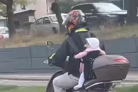Motosiklet sürücüsü bir baba, bebeğini arkasına bağladıktan sonra trafikte ilerlemeye başladı. Bu olayı gören diğer sürücüler büyük bir şaşkınlık içinde kaldılar. Bebeğini bu şekilde tehlikeli bir yolculuğa çıkaran sürücü, hem kendi hem de bebeği için büyük bir risk oluşturdu. Yolculuk saniye saniye cep telefonu kameralarıyla kaydedildi.
