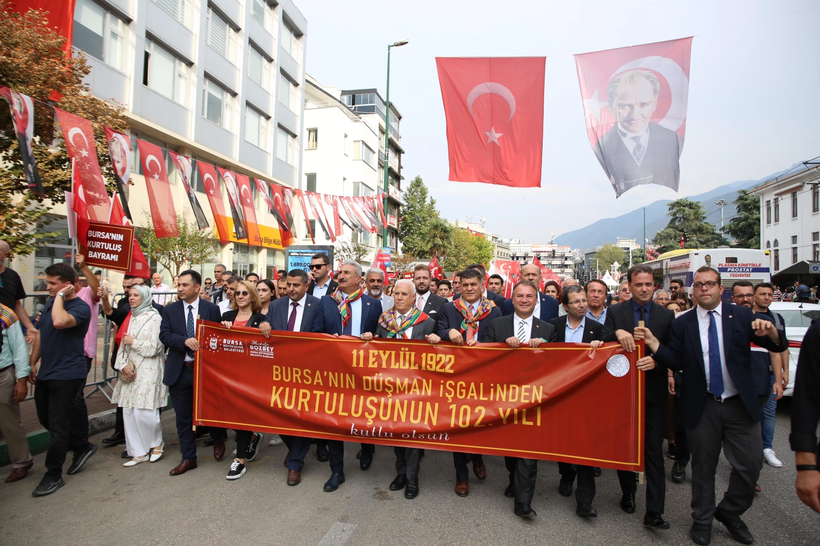 Bursa’da 2 yıl, 2 ay, 2 gün süren Yunan işgalinin sona ermesinin 102’inci yılı kutlamaları, Setbaşı’ndan başlayıp Atatürk Caddesi’ndeki Tarihi Belediye Binası’na kadar süren kortej yürüyüşüyle başladı. Büyükşehir Belediyesi Bando Takımı eşliğinde yapılan yürüyüşe Bursa Büyükşehir Belediye Başkanı Mustafa Bozbey’in yanı sıra CHP İl Başkanı Nihat Yeşiltaş, Büyükşehir Belediyesi Genel Sekreteri Doç. Dr. Ergül Halisçelik, genel sekreter yardımcıları, meclis üyeleri ve vatandaşlar katıldı. ‘Bursa’nın düşman işgalinden kurtuluşunun 102. yılı kutlu olsun’ pankartı taşıyan katılımcılar, ellerindeki Türk bayrakları ve dövizlerle yürüyüşe geçti. Yürüyüş sırasında gazete dağıtıcıları tarafından ‘Yazıyooor, yazıyooor! Bursa’nın kurtuluşunu yazıyor’ diyerek ‘Hür Bursa Gazetesi Özel Sayısı’nın dağıtımı yapıldı. Başkan Bozbey, yürüyüş sırasında Bursa’nın yöresel kıyafetleri giydirilen bir bebeği de kucağına alarak sevdi. “Bursa’mızın kurtuluşunu kutluyoruz” Yürüyüşün ardından açıklamalarda bulunan Başkan Mustafa Bozbey, 102 yıldır aynı coşkuyla yürüdüklerini, Bursa’nın kurtuluşunu ve şanlı zaferi kutlamak için toplandıklarını söyledi. Tam 102 yıl önce Bursa’yı saran özgürlük sevincini yüreklerde hissettiklerini belirten Başkan Bozbey, “Bursa’nın kalbi o günkü gibi özgürce ve hür olarak atıyor. Her sokakta yankılanan, her yürekte büyüyen halkımızın destanını, Bursa’mızın kurtuluşunu kutluyoruz. 8 Temmuz 1920’den 11 Eylül 1922 tarihine kadar işgal altında kaldı Bursa. Bursa’nın işgalini o dönem gazeteler ‘Türk’e verilen azapların en acısı’ diye duyuruyordu. Meclis yastaydı. Kürsü, ‘Puşide-i Siyah’ ile kapatılmıştı. İşgal karanlığı kaplamıştı ülkemizi. İstiklal şairi Mehmet Akif Ersoy, ‘Kıyametler koparmak neydi ey bülbül, nedir derdin?’ diyerek kederle anlatmıştı işgali. Ulu Önderimiz Gazi Mustafa Kemal Atatürk’ün talimatıyla yıllar sürecek mücadele ve direniş başladı. Türk ordusunun kararlı ilerleyişi, Bursa halkının özgürlük sevdasıyla verdiği mücadele sonucu 10 Eylül 1922'de işgal güçleri geri çekilmeye başladı. Haber, Ankara’ya hemen ulaştı. Bu haber ulaşınca kara örtü Meclis kürsüsünden kaldırıldı. Bütün bir ülkenin kurtuluş ümidi, Bursa’da yeşerdi. 11 Eylül sabahı, esaret zincirini kıran güneşe selam durdu Bursa halkı” diye konuştu. “Bu tarihi gün, ortak geleceğe olan inancın sonucudur” 11 Eylül 1922 tarihinin Bursa’nın yeniden doğduğu bir tarih olduğunu anlatan Başkan Bozbey, bu zaferin ülkenin kaderini değiştiren büyük mücadelenin sonucu olduğunu ifade etti. Mustafa Kemal Atatürk’ün ve silah arkadaşlarının önderliğinde alınan zaferin, milletimizin azim ve kararlılığıyla kazanıldığını dile getiren Başkan Bozbey, “Bursa’nın bağımsızlık mücadelesini, ulusal direnişin en önemli simgelerinden biri olarak hafızalarımızda hep aynı canlılıkla yaşatacağız. Bu tarihi gün, ortak geleceğe olan inancın sonucudur. Milletimizin iradesi ve kararlılığıyla yenilmez denen ordular yenildi. Aşılmaz denen yollar aşıldı. Daha güçlü, daima hür ve bağımsız bir Bursa için Kuva-yi Milliye ruhuyla birlik ve beraberlik içerisinde çalışacağız. Atalarımızın fedakarlıkları, alın teri ve mücadelesiyle kazanılmış bu toprak için durmaksızın çalışmak, miraslarını korumak boynumuzun borcudur” dedi. “Zaferin kutlu olsun Bursam” Bu yıl kurtuluş coşkusunun ayrı bir önemi olduğunu da söyleyen Başkan Bozbey, Cumhuriyet’in ilanından sonra Ulu Önder Mustafa Kemal Atatürk’ün Cumhurbaşkanı olarak Bursa’ya gelişinin de 100’üncü yılında olduklarını hatırlattı. 11 Eylül kutlamaları için kente gelen Atatürk’ün, o günkü konuşmasında yol haritası çizdiğini de anlatan Başkan Bozbey, “Atamızın ‘Yeşil yurt’ dediği Bursa’nın uygarlık ve yenileşme yolunda Cumhuriyet’i güçlendirecek çalışmalarda her zaman ileri saflarda olacağını vurgulamıştır. Atamızın ziyaretleri kentimizin modernleşme ve gelişme yolundaki adımlarını da hızlandırmıştır. Atamızın çizdiği bu yolda hep beraber hedefe doğru yürüyoruz. Bundan 102 yıl önce kurtuluş meşalesini yakan Bursa, yine kentimizde yapacağımız çalışmalarla tüm ülkeyi aydınlatacak ve ülkemize örnek olacaktır. Kurtuluş yolculuğundaki o ruhu asla unutmadık. Unutturmayacağız. Başta Ulu Önderimiz Gazi Mustafa Kemal Atatürk ve silah arkadaşları olmak üzere İstiklal şehitlerimizi derin sevgi, sonsuz saygı, rahmetle ve minnetle anıyorum. Zaferin kutlu olsun Bursam” diye konuştu. Kutlamalar, Büyükşehir Belediye Bandosu ve Bursa Mehteran Takımı Konseri ile Tahtakıran Kılıç Kalkan ekibinin Orhangazi Parkı’ndaki gösterileriyle devam etti. Daha sonra Türkiye Muharip Gaziler Derneği Bursa Şubesi üyeleri, şehrin kurtuluşunu temsili olarak canlandırdı. Türk bayrakları ile Tarihi Belediye Binası'nın önüne gelen milis kuvvetleri, vatandaşlardan alkış aldı. İstiklal Marşı'nın okunması sırasında Tarihi Belediye Binası'ndaki Türk bayrağı, gaziler tarafından göndere çekildi. Ardından milis kuvvetleri temsilcileri, Türk bayrağını öperek Büyükşehir Belediye Başkanı Mustafa Bozbey’e teslim etti. Başkan Bozbey, Vali Yardımcısı Rıza Gençoğlu ve Garnizon Komutan Vekili Veteriner Albay Murat Dülgar ile birlikte gazilere çiçek takdim etti. Program, Ulu Cami'den kurtuluş selasının okunmasıyla sona erdi.