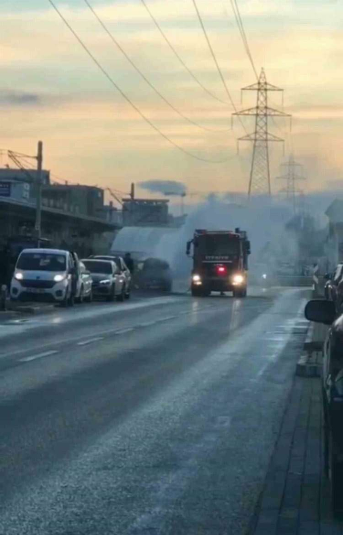 Olay yerine gelen itfaiye ekipleri yangına müdahale ederek söndürürken o anlar çevredeki vatandaşların cep telefonu kamerasına yansıdı.