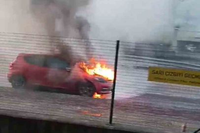 Bursa’da seyir halindeki otomobil bir anda alev alırken o anlar cep telefonu kamerasına yansıdı.