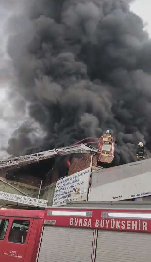 Bursa'da tekstil fabrikasında çıkan yangın korku dolu anlar yaşattı. İtfaiye ekiplerince yangın söndürülürken gökyüzünü siyah dumanlar kapladı.