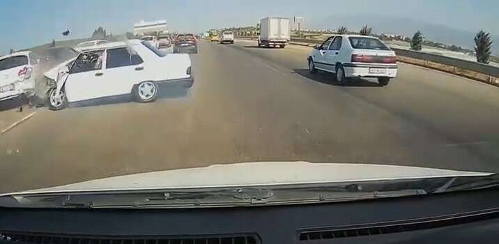 Kayan otomobil önündeki araca çarparken, arkadan gelen araçlarda duramadı. 4 aracın karıştığı kaza ise araç kamerasına saniye saniye yansıdı.