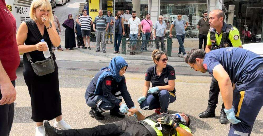 Kaza, merkez Osmangazi ilçesine bağlı, Altıparmak Caddesi üzerinde meydana geldi. Ayşegül K. 34 DB 2522 plakalı otomobili ile seyir halindeyken, telefonundan navigasyonundan konuma baktı. Refleksle dönüş yapan kadın sürücü önünde ilerleyen motosikletli trafik polisi A.Ç’ye çarptı. Çarpmanın etkisiyle savrulan polis memuru yere düşerken, ihbar üzerine ilk yardıma meslektaşları ve sağlık ekipleri geldi. Olay yerinde ilk müdahalesi yapılan polis memuru, Çekirge Devlet Hastanesine sevk edilirken, meslektaşları da konuyla ilgili tahkikat başlattı.