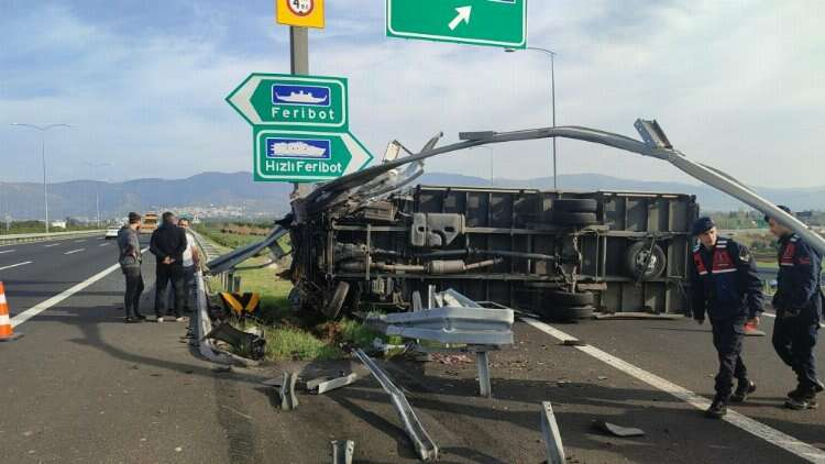 Bursa'nın Orhangazi ilçesinde, Gebze-Orhangazi-İzmir otoyolu, Orhangazi kavşağında meydana gelen bir kaza sırasında bir kamyonet kontrolden çıktı, bariyere çarptı ve devrildi. Kazada bulunan kamyonet sürücüsü şans eseri kazayı hafif sıyrıklarla atlattı.