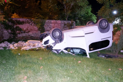 Edirne'de polisin "dur" ihtarına uymayan göçmen kaçakçısı şüphelinin kullandığı otomobil camii bahçesine uçarken, durdurulan diğer araçta ise 9 göçmen yakalandı.