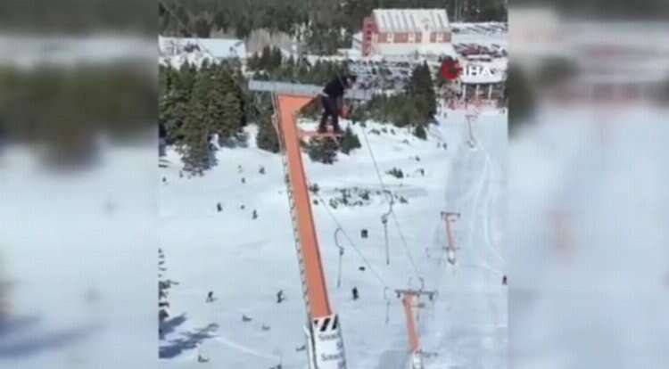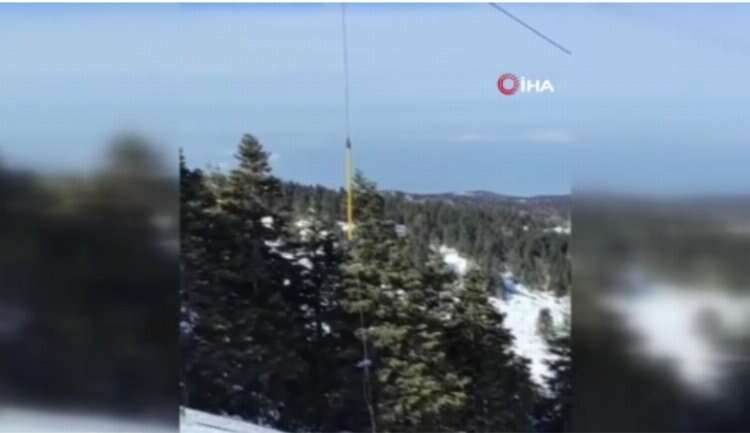 Uludağ’da kayakçıların ve tatilcilerin kullandığı telesiyejin telleri kopunca bir turist yaralandı. Jandarma ekiplerince kar motoruyla hastaneye kaldırılan turist tedavi altına alınırken, telesiyeji tamir etmek için gelen işçi ise adeta ölüme meydan okudu. Arka arkaya yaşanan ihmaller kameraya yansıdı.