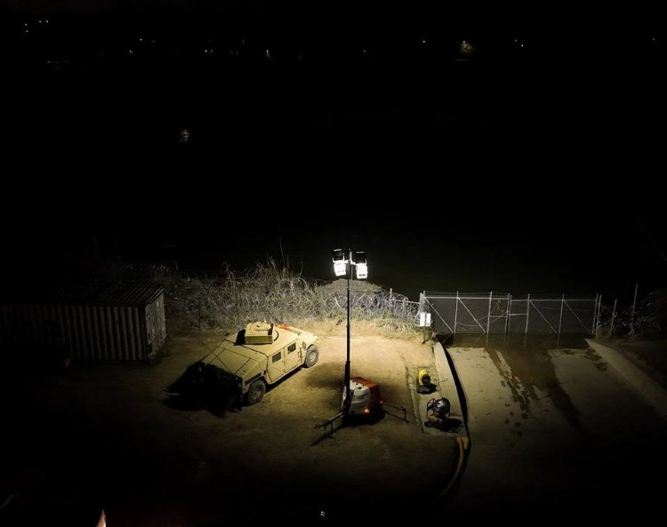 Rio Grande nehrinin kenarındaki nöbetlerini karanlık bastıktan sonra da devam ettiren eyalet muhafızları, nehrin ABD kıyısını jeneratör yardımıyla devasa ışıklarla aydınlattı.