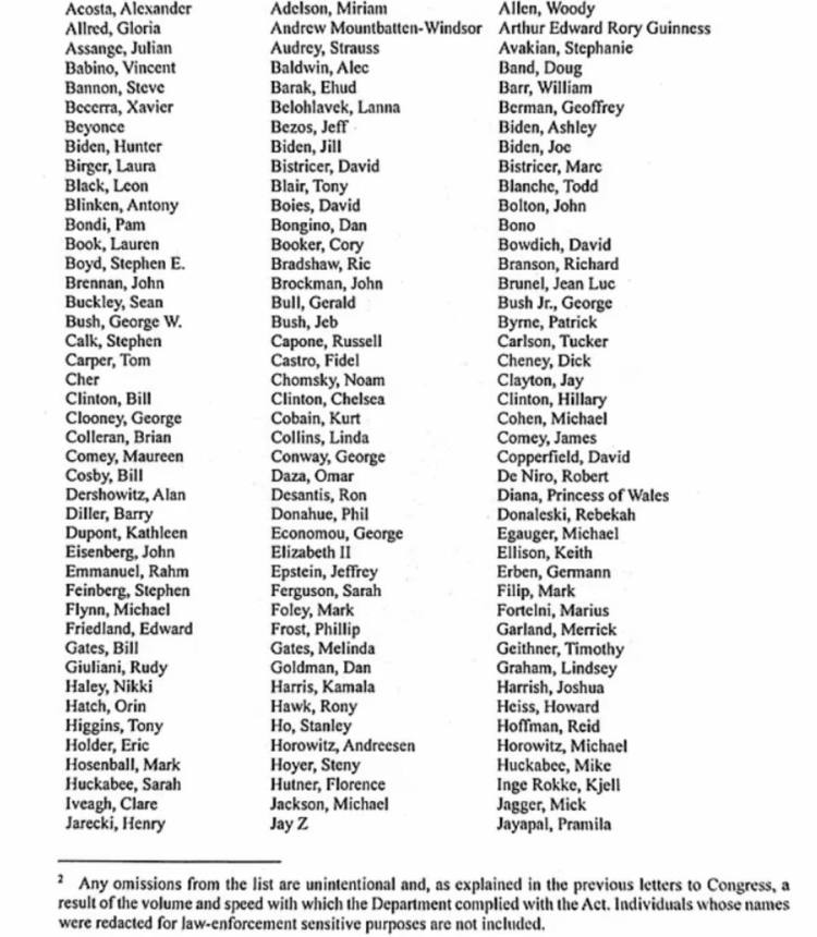 Epstein dosyalarında adı geçen ünlülerin tam listesini paylaştı