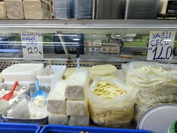 Pazarda satılan peynirlerde kilogram başına fiyatlar oldukça çeşitli. Köy peyniri, 100 lira ile en uygun seçenekken, Eski Kaşar peyniri 240 lira ile en yüksek fiyatlı ürünler arasında yer alıyor. Fiyat aralığı içinde, Antalya Peyniri, Balıkesir peyniri, Çeçil peyniri gibi çeşitli seçenekler bulunuyor. Marketlerde ise benzer çeşitlerdeki peynirlerin fiyatlarının daha yüksek olduğu gözlemleniyor.