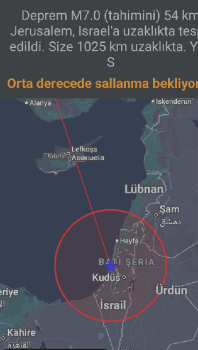“54 km ötede 7 şiddetinde deprem diye alarm ötmeye başladı. Bir baktım İsrail yazıyor sonra...”