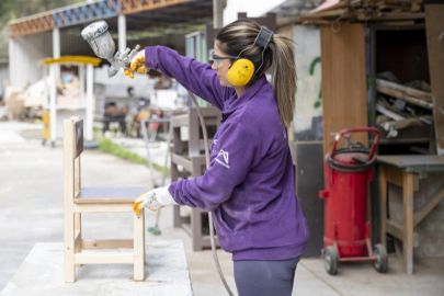 Geri Dönüşüm Atölyesi’nde marangoz olarak görev yapan Teslime Özdemir; atölyeye atıl olarak gelen malzemeleri, Büyükşehir’in Çocuk Gelişim Merkezleri’ne gelen çocukların faydalanması için masa, sandalye ve oyun parkurlarında kullanılan mobilyalar gibi ürünlere dönüştürerek yeniden kullanıma kazandırdıklarını ifade etti. Kadın ve Aile Hizmetleri Dairesi Başkanlığı’nda önceleri büro personeli olarak görev yapan namı diğer Teslime Usta, “Bu mesleğe, dedemden gördüğüm ve sevdiğim için hep bir merakım vardı. Atölyede de kadın marangoz aradıklarını duydum ve yapabilirim düşüncesiyle girdim. Atölyede bir süre çalışınca işi sevdim ve kalfalık sertifikasını aldım. 5 yıl boyunca atölyede, ustalarımızla beraber birimlerimize malzemeler ürettik. 5 yılı doldurduktan sonra da ustalık belgemi aldım. Geri dönüşüm atölyemizde şimdiye kadar dairemizin birimlerinin mobilyalarının tamamına yakınını ürettik. Çocuk oyun malzemelerimizi üretiyoruz, ürettikçe de mutlu oluyoruz.İşimi severek yapmaya devam ediyorum” dedi.