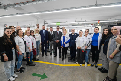 İZMİR (İGFA) - İzmir Büyükşehir Belediye Başkanı Dr. Cemil Tugay, CHP İzmir İl Başkanlığı’nın 8 Mart Dünya Emekçi Kadınlar Günü programı kapsamında Buca’da kadın işçilerle bir araya geldi. Çalışanlarının yüzde 85’i kadın olan Narkonteks Tekstil AŞ’yi ziyaret eden Başkan Dr. Cemil Tugay, üretim yapan kadın işçilere karanfil dağıttı ve birlikte yemek yedi. Başkan Tugay’a CHP İzmir İl Başkanı Şenol Aslanoğlu, Buca Belediye Başkanı Görkem Duman, CHP Kadın Kolları üyeleri de eşlik etti. Narkonteks Tekstil AŞ Yönetim Kurulu Başkanı ve Buca Ege Organize Sanayi Bölgesi Yönetim Kurulu Başkanı Toygar Narbay, Yönetim Kurulu Başkan Yardımcısı Tolga Narbay ve yönetim kurulu üyeleri Tugay’a üretimlerine ilişkin sunum yaptı.