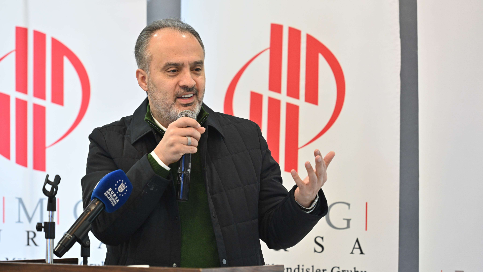 Şehitlere rahmet ve yaralı askerlere ise acil şifa dilekleri ile söze başlayan Bursa Büyükşehir Belediye Başkanı Alinur Aktaş, “Zor bir coğrafyada yaşıyoruz. Allah bir daha böyle acılar yaşatmasın” dedi. Mimar ve Mühendisler Grubuna davetleri için teşekkür eden Başkan Aktaş, “3.5 milyon nüfuslu bir şehirde yaşıyoruz. Trafik ve ulaşım bu şehrin en önemli konularından bir tanesi. Standartları yüksek, sanayi karakteristiği çok fazla ön plana çıkan bir şehir, Bursa. Tarih, kültür, turizm ve tarım gibi farklı başlıklar altında da Bursa çok kıymetli, özel ve özellikli bir şehir. Tüm bunların yanında çok hormonlu ve merkezde, hızlı büyüyen bir şehir. Bu bile başlı başına tartışılması gereken bir konu. Şehri ve şehrin sağlıklı gelişimini düşünmek zorundayız. Şehrin dönüşmesi gerekiyor. Ülke bir deprem kuşağında şehir zaten deprem kuşağında. 1855’deki depremden sonra yıkıcı deprem gözükmese de bunun için gereken hamleleri yapmamız lazım. Yeni dönem belediyeciliğinde iki konu var: ‘dirençli ve sağlıklı şehirler: kentsel dönüşüm’ ve ‘iklim değişikliği, kuraklık’. Bu iki başlığın çok ciddi alt başlıkları mevcut ve kesinlikle bu iki konuyla alakalı radikal tedbirler almamız gerekiyor. Sanayi, tarım, turizm planlamada, diğer şehir planlarının da çok doğru ve sağlıklı bir biçimde ayarlanması lazım. Biz en radikal adımları atmamız gereken dönemdeyiz. Bursa gibi ekonomik aktivitesi yüksek, dinamik bir şehirde hiçbir mazeretin ardına sığınmıyoruz, daha radikal adımları atıp şehirle alakalı dönüşümlerin ve gelişimin daha sağlıklı bir şekilde gerçekleşmesi adına elimizden geleni yapacağız. Buna dair tecrübe ve inancımız var” dedi.