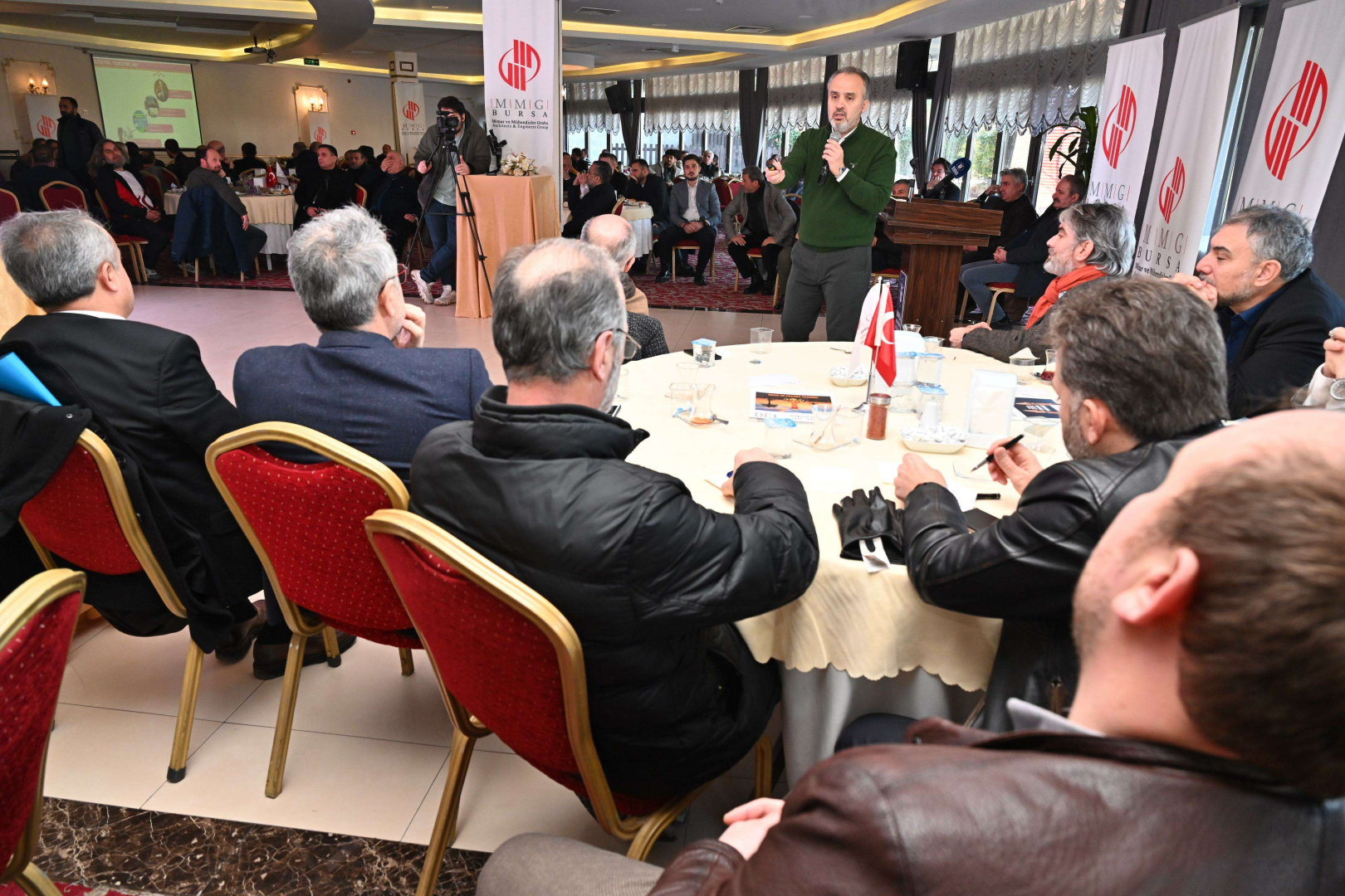 Mimar ve Mühendisler Grubu’nun tanıtım videosunun izlenmesiyle başlayan etkinliğe Bursa Büyükşehir Belediye Başkanı Alinur Aktaş, Mimar ve Mühendisler Grubu Bursa Şube Başkanı Kasım Şükrü Karabulut, Mimar ve Mühendisler Grubu Genel Başkanı Bülent Şen, kamu kurum ve kuruluşlarının ve sivil toplum kuruluşlarının temsilcileri ile Mimar ve Mühendisler Grubu üyeleri katıldı.