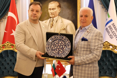 BURSA (İGFA) - Bulgaristan’ın Tırnova Belediye Başkanı Daniel Dimitrov Panov, kardeş şehir ilişkileri kapsamında Bursa’ya gelerek Büyükşehir Belediye Başkanı Mustafa Bozbey’i Tarihi Belediye Binasında ziyaret etti. CHP Bursa Milletvekili Hasan Öztürk'ün de yer aldığı buluşmada, iki kent arasındaki dostane ilişkilerin geliştirilmesi, kültürel ve ekonomik iş birliğinin artırılması gibi konular ele alındı.