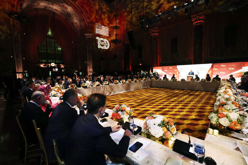 Birleşmiş Milletler (BM) 78. Genel Kurulu nedeniyle New York'ta bulunan Cumhurbaşkanı Recep Tayyip Erdoğan, Türk-Amerikan İş Konseyince (TAİK) düzenlenen yemekte iş dünyası temsilcileriyle bir araya geldi.