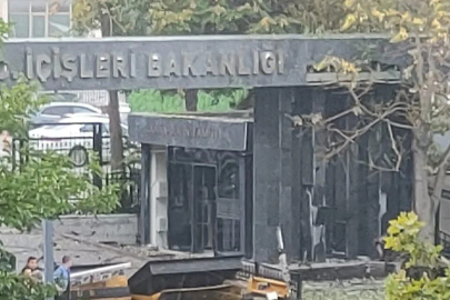 2 teröristin etkisiz hale getirildiği İçişleri Bakanlığı giriş kapısı.