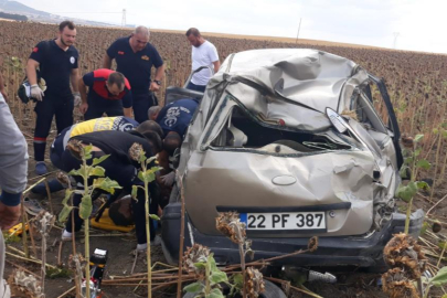 Edirne’nin Keşan ilçesinde kontrolden çıkan otomobilin ayçiçeği tarlasına uçtuğu kazada 1 kişi hayatını kaybederken, 2 kişi de yaralandı.